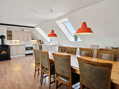 Lejligheden er komfortabelt indrettet og har alle nødvendige faciliteter. Der er en smuk udsigt til det omkringliggende marker og havet. På kølige aftener kan I sidde i stuen og slappe af til lyden af de knitrende flammer fra brændeovnen. I skal ikke betale ekstra for opvarmningen i fyringssæsonen.