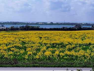 Øens absolut bedste badestrand Kerneland ligger kun ca 6 km væk.
