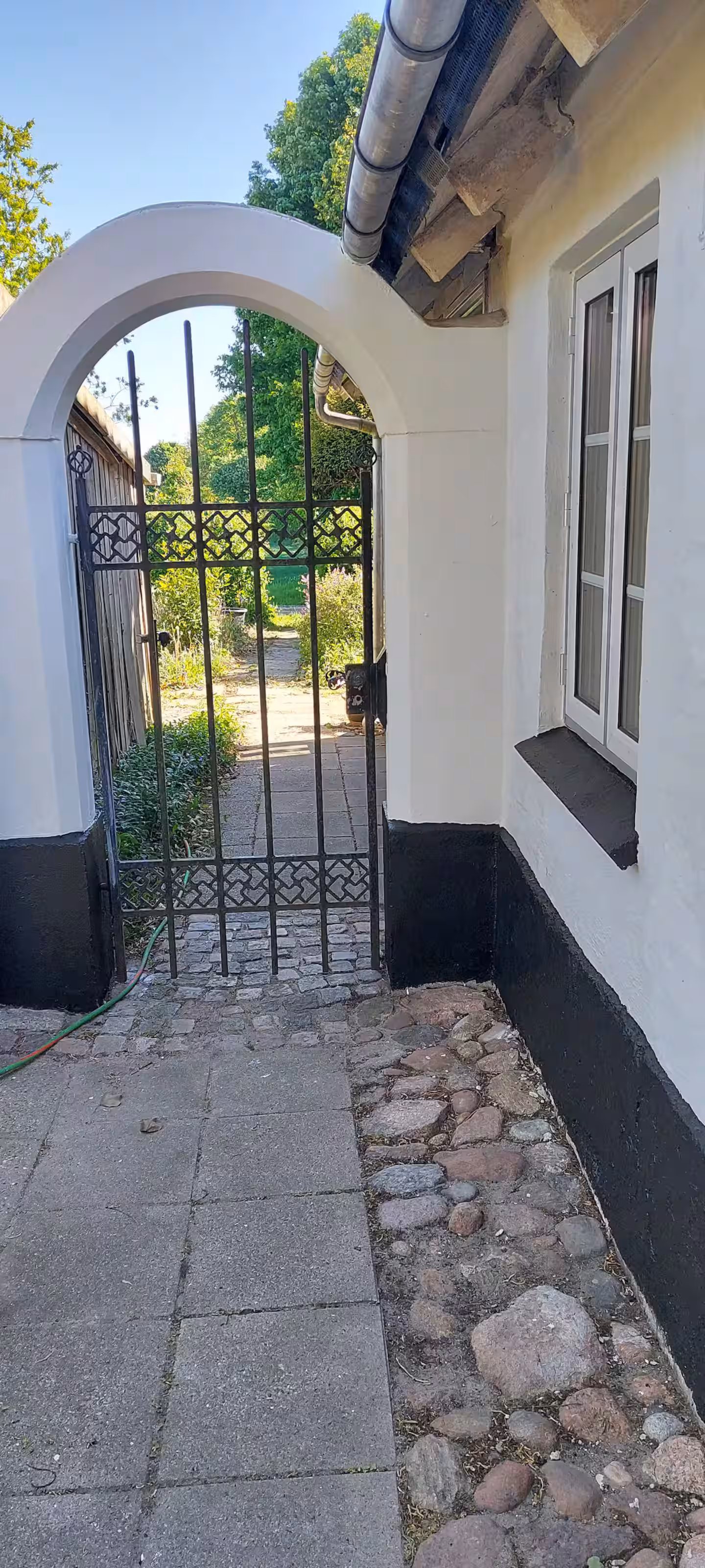 Huset ligger på en stor naturgrund med æbletræer og frit udsyn til åbne marker. Der er blot 33 meter til vandet, hvilket giver en sjælden nærhed til naturen og mulighed for at nyde stilheden og udsigten flere gange dagligt.
