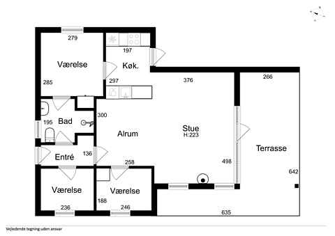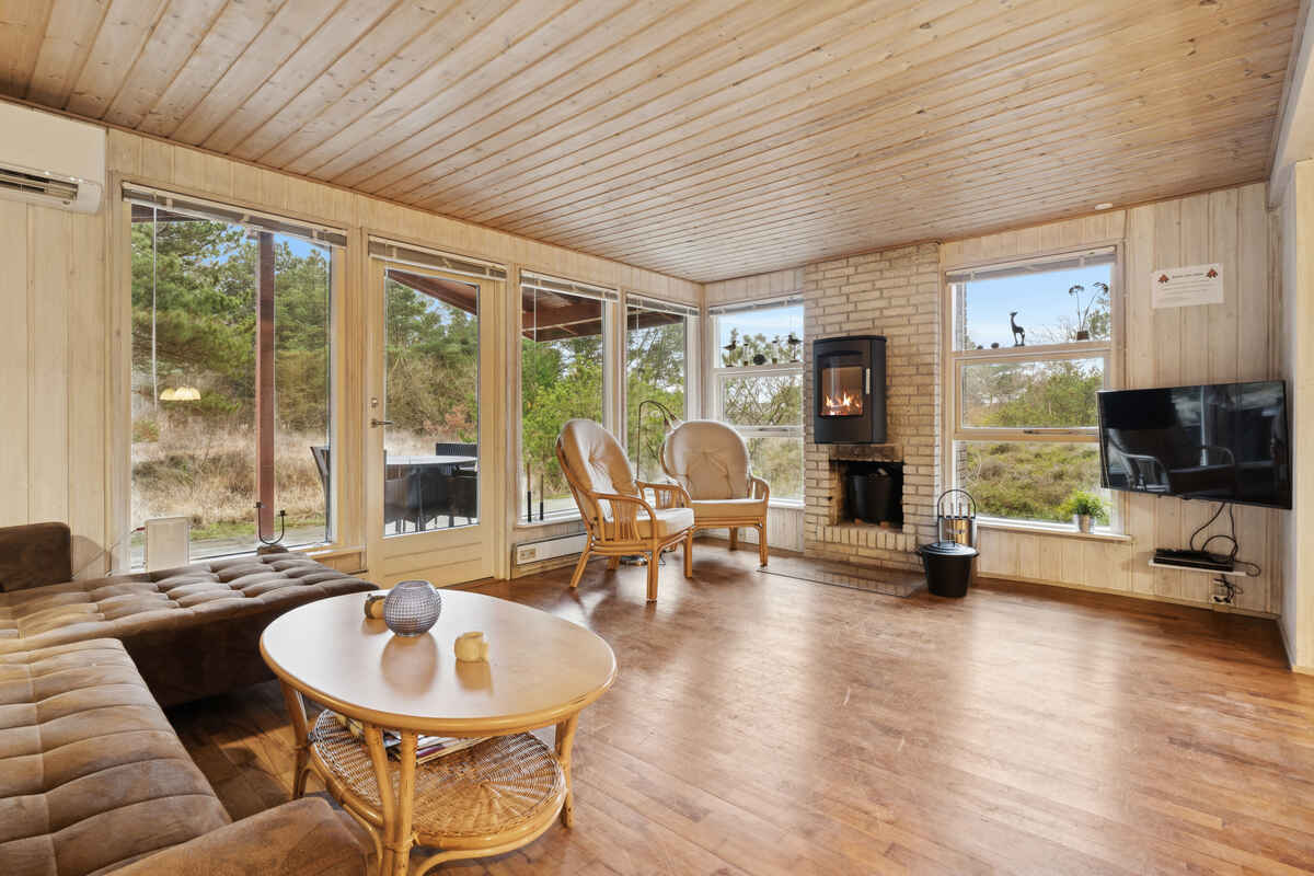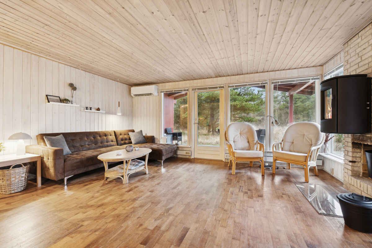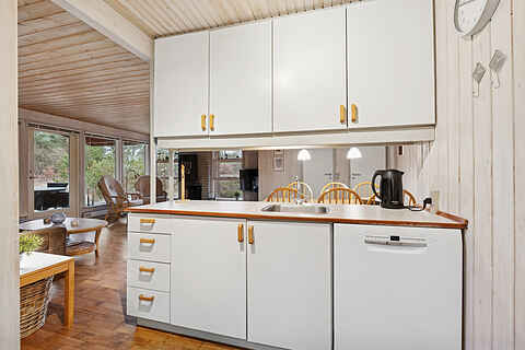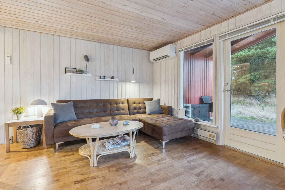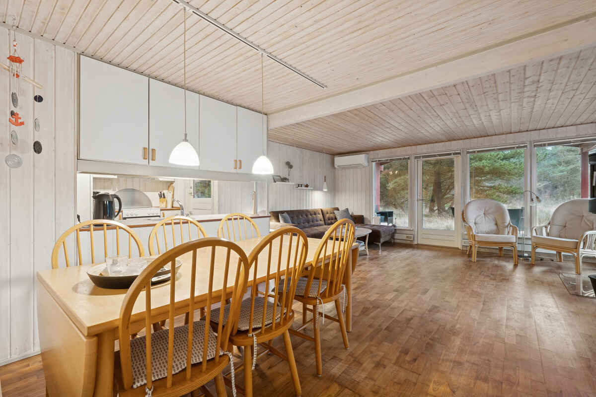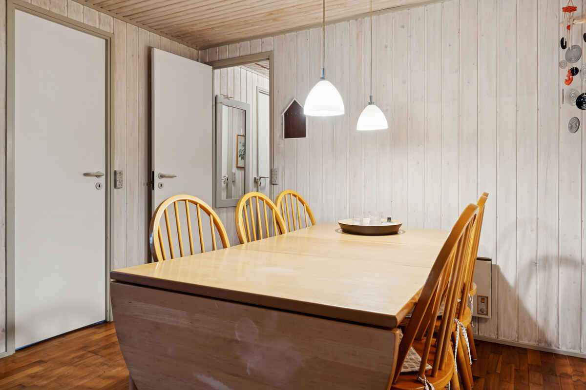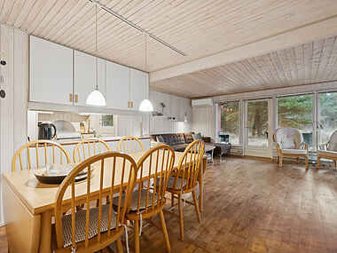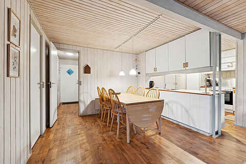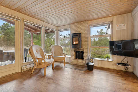Det 64 m² store sommerhus rummer plads til fem personer og er indrettet til et ophold, hvor ro og nærhed til naturen er i centrum. Den åbne planløsning giver en afslappet atmosfære og gør det let at være samlet, uanset om dagen foregår ude eller inde.