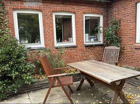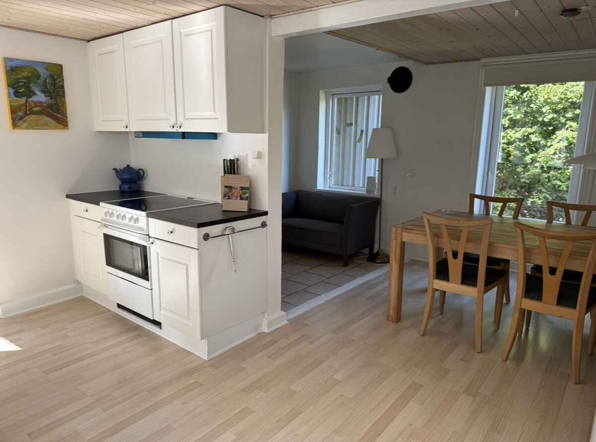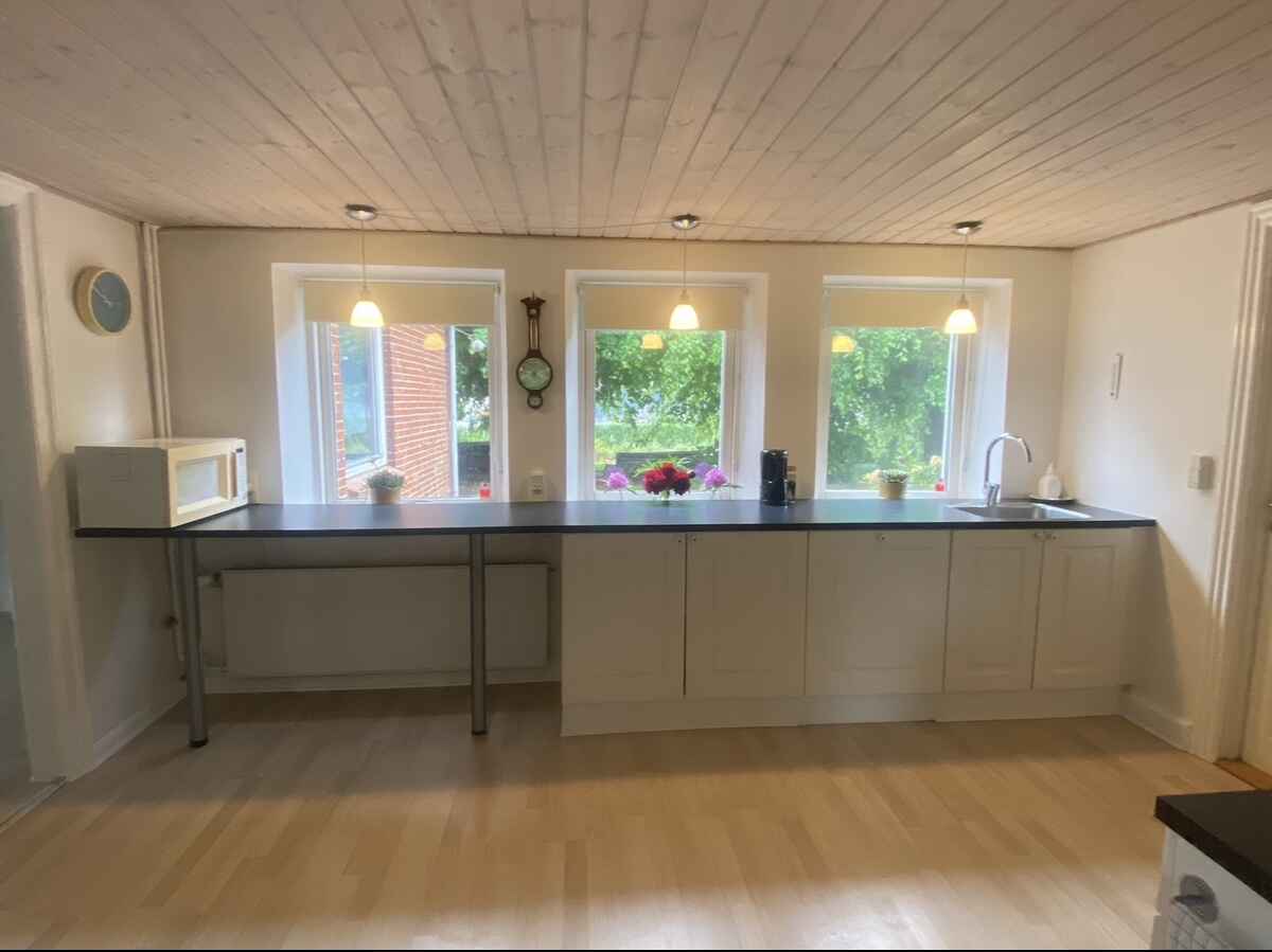 Gårdens hjerte er det hyggelige køkken-alrum, et socialt samlingspunkt, hvor man kan nyde måltider sammen eller slappe af foran den lune brændeovn, der skaber en særlig atmosfære på kølige dage. Fra alrummet er der direkte adgang til haven, hvilket inviterer til udendørs aktiviteter og giver mulighed for at nyde den fynske natur lige uden for døren.