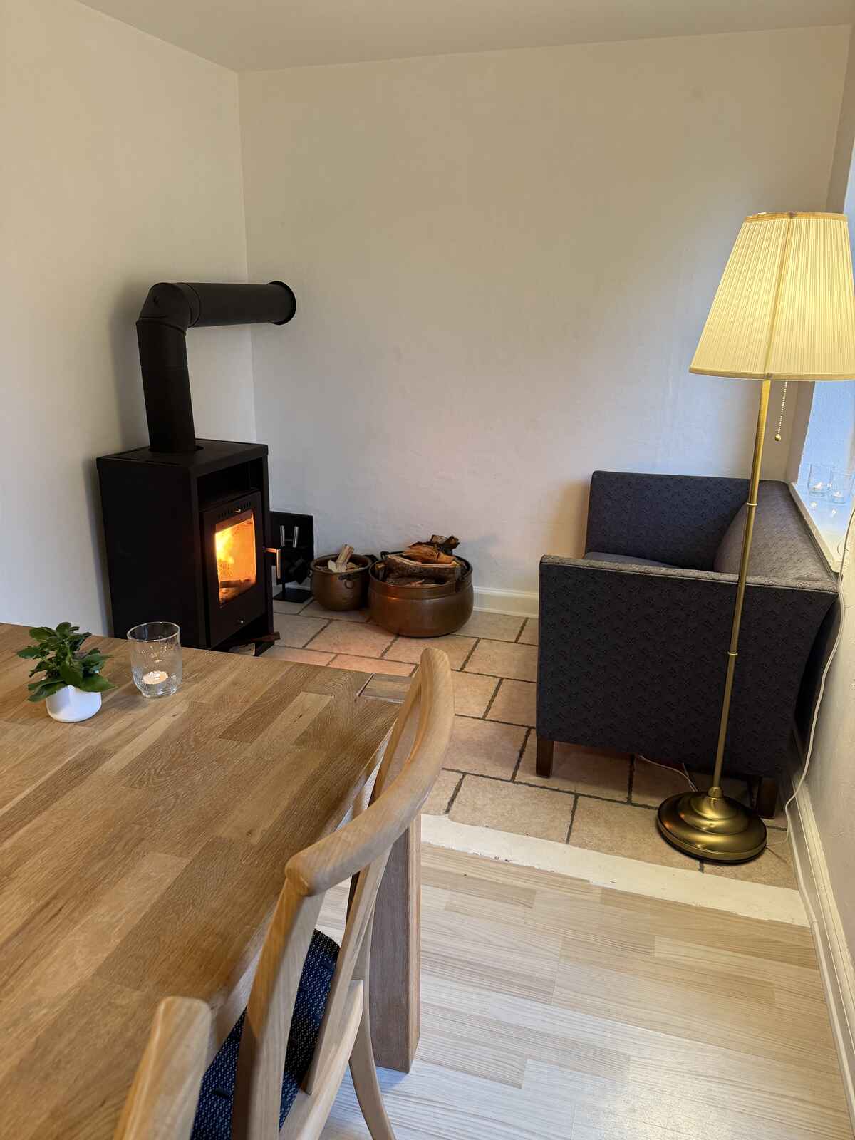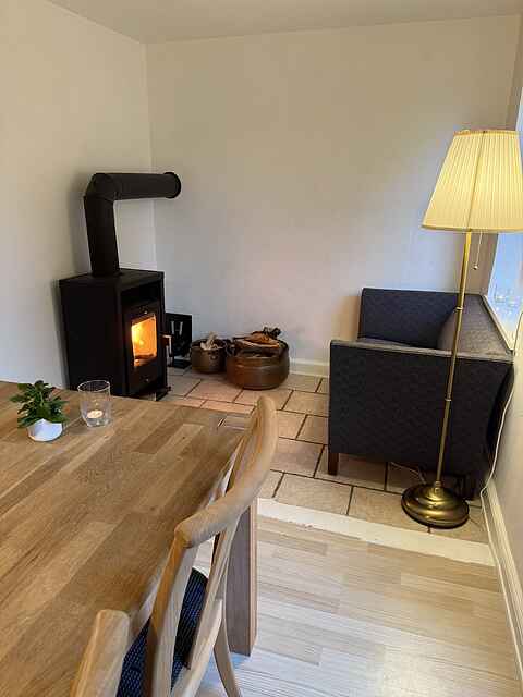 Gårdens hjerte er det hyggelige køkken-alrum, et socialt samlingspunkt, hvor man kan nyde måltider sammen eller slappe af foran den lune brændeovn, der skaber en særlig atmosfære på kølige dage. Fra alrummet er der direkte adgang til haven, hvilket inviterer til udendørs aktiviteter og giver mulighed for at nyde den fynske natur lige uden for døren.