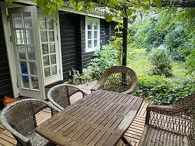 Udendørs kan I nyde den store, private have fyldt med idyllisk beplantning og smukke træer, små kroge og skyggefulde træer, hvor I kan lege med familien eller blot læne jer tilbage og nyde solskinnet. Den nybyggede træterrasse fungerer som en samlingsplads for udendørs spisning og hyggelige sommeraftener.
