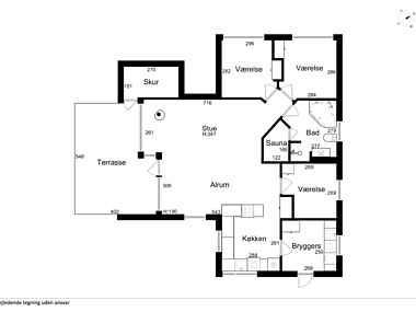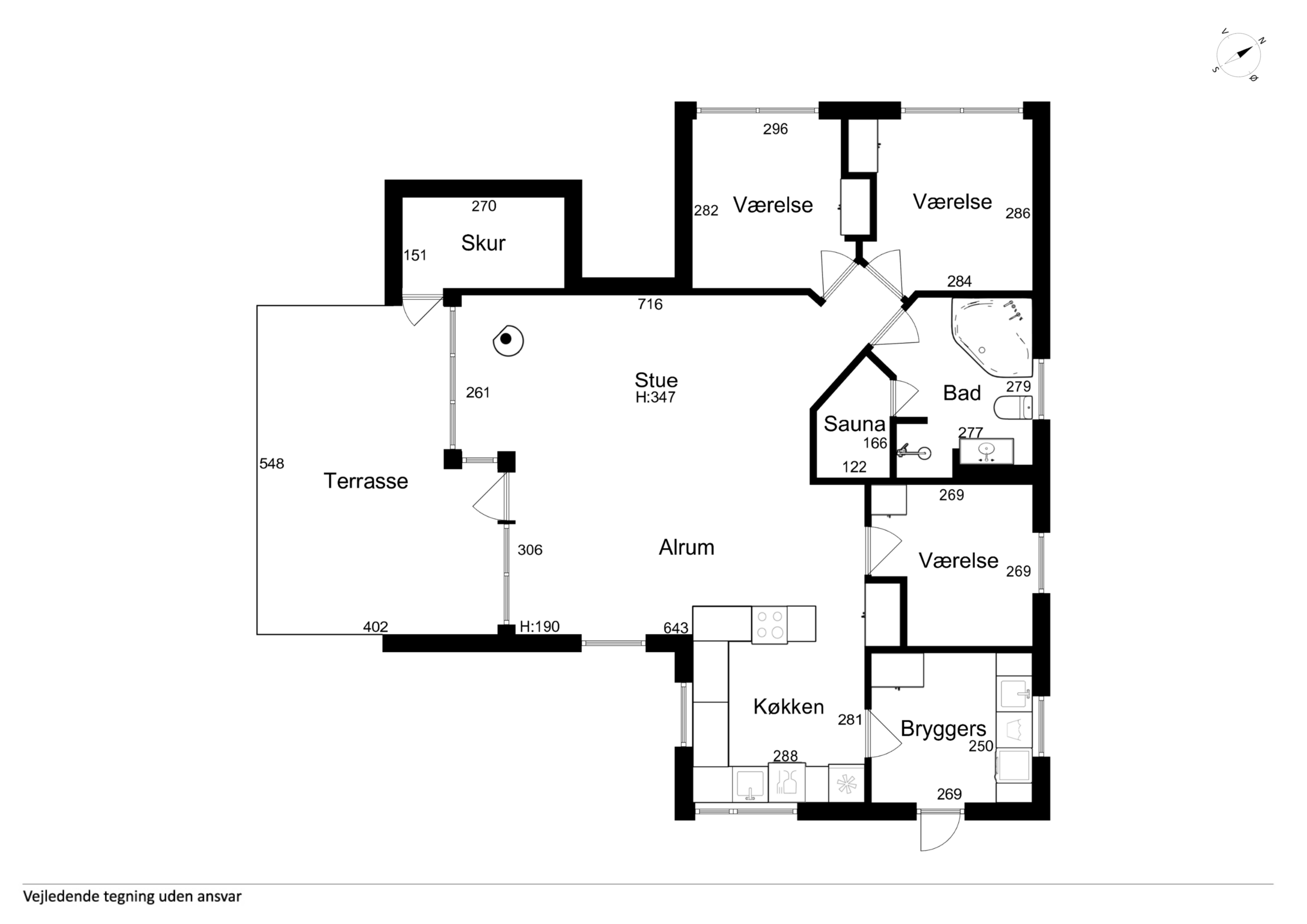 Opholdsrummet har åbent køkken og spiseplads, der samler alle til fælles måltider. Store vinduer giver et lyst og indbydende rum med udsyn til den grønne have. Terrassen er oplagt til grill og hyggestunder.