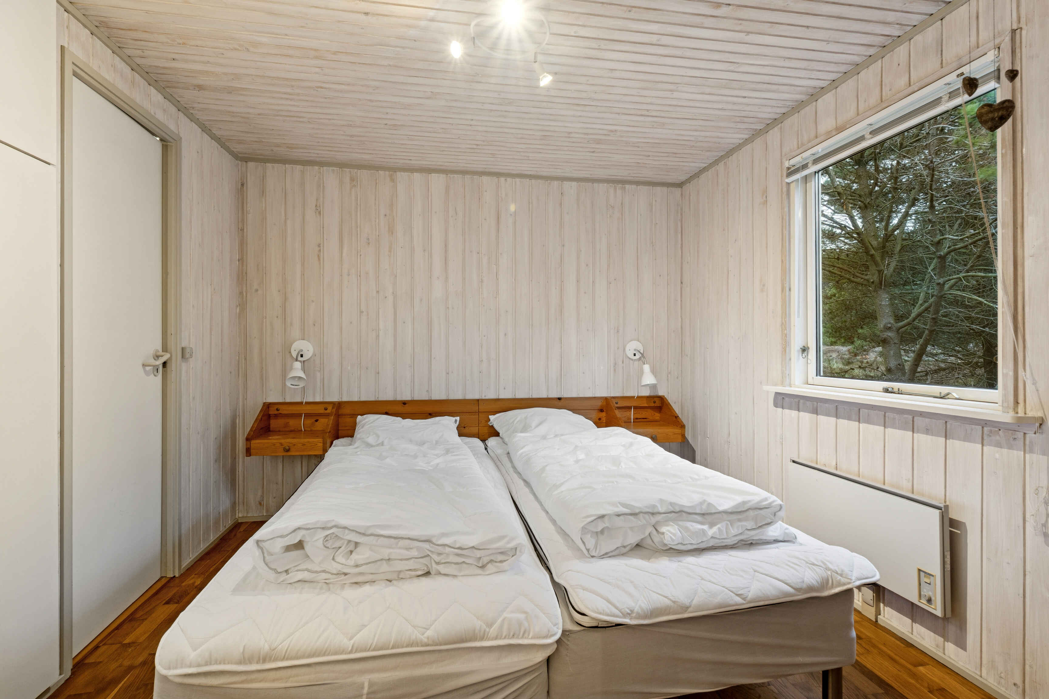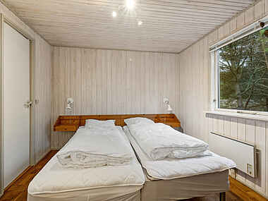 Det 64 m² store sommerhus rummer plads til fem personer og er indrettet til et ophold, hvor ro og nærhed til naturen er i centrum. Den åbne planløsning giver en afslappet atmosfære og gør det let at være samlet, uanset om dagen foregår ude eller inde.