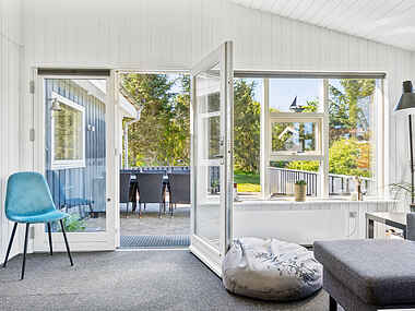 Huset er blevet gennemgribende renoveret og tilbyder særdeles komfortable rammer om ferieturen. Her er lyst og lækkert, og den moderne komfort går på fornem vis i spænd med husets klassiske sommerhuscharme. Indretningen giver optimale betingelser for det hyggelige samvær med familie og venner. Husets hjerte er det store opholdsrum, der har loft til kip og et dejligt lysindfald fra store vinduespartier. Her er både sofagruppe, spisebord og en spisedisk, der adskiller stuen fra det flotte køkken. Hertil kommer endnu en stue med sofa, tv og spillekonsol. Huset byder på to soverum, hvoraf det ene har dobbeltseng, og det andet har enkeltseng samt en dobbeltseng. Desuden er der en hems med 2 madrasser og gode anvendelsesmuligheder og havkig. Endelig et stort dejligt bryggers med gode vaskefaciliteter og et nydeligt badeværelse med brus.