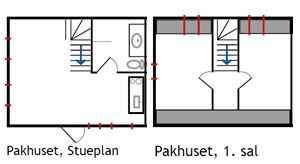Indgangen fører direkte til en hyggelig stue med te-køkken, miniovn og kogeplader. En trappe fører op til første sal, hvor der er to soverum med dobbeltsenge (1 x 120 cm. x 200 cm og 1 x 120 cm og 130 cm). Alt er funktionelt og praktisk indrettet.