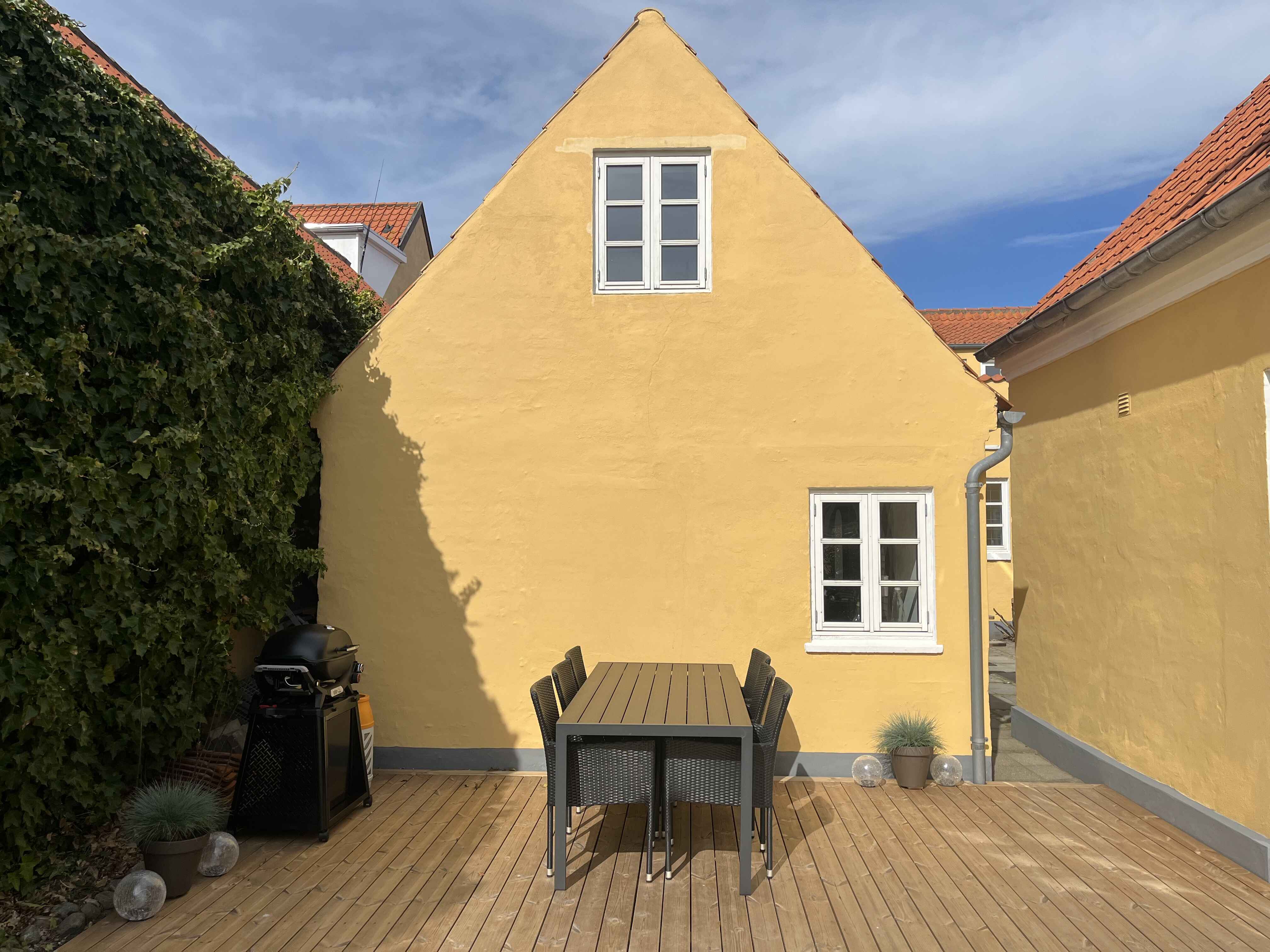 Udenfor finder du en dejlig træterrasse med havemøbler og gasgrill – perfekt til måltider i solen. Sengelinned, håndklæder og forbrug er inkluderet i lejen, så du kan rejse let og nyde opholdet fra første dag.