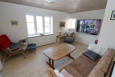 Stueplan: Dejlig entre med ekstra aflæggerplads. adgang til 1 dejligt soveværelse (1 DS) samt udgang til den lukket have og terrassen. Dejligt badeværelse med toilet, muret bruseniche, håndvask, pusleplads og klinkegulv med gulvvarme. Stort landkøkken med komfur med keramiske kogeplader, emhætte, opvaskemaskine og køleskab med fryseboks. Seperat spisestue med spiseplads og adgang til opholdsstue med polstermøbler og stort TV på væggen med danske kanaler. 1 hund tilladt. Ikke ryger hus.