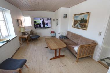 Stueplan: Dejlig entre med ekstra aflæggerplads. adgang til 1 dejligt soveværelse (1 DS) samt udgang til den lukket have og terrassen. Dejligt badeværelse med toilet, muret bruseniche, håndvask, pusleplads og klinkegulv med gulvvarme. Stort landkøkken med komfur med keramiske kogeplader, emhætte, opvaskemaskine og køleskab med fryseboks. Seperat spisestue med spiseplads og adgang til opholdsstue med polstermøbler og stort TV på væggen med danske kanaler. 1 hund tilladt. Ikke ryger hus.