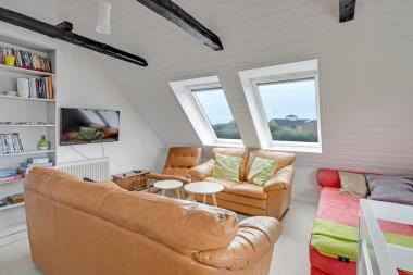 1. sal: Trappeopgang til 1. sal hvor der er en ekstra stue med lædermøbler, TV med tyske programmer og mulighed for streamingtjenester via Chromecast eller apple-TV samt fantastisk udsigt til Vesterhavet, området og Ferring Sø. På 1. sal er huset andet (1DS) samt 2 enkelte sovesofaer i opholdstuen. Ikke rygerhus. Husdyr ikke tilladt