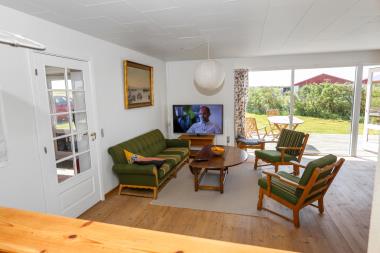 Rummeligt indrettet hus med en dejlig udsigt til Vesterhavet og over området. Stor rummelig stue som er opdelt i spisestue, stue som er kombineret med køkken. Stuen er med F-TV med danske og tyske programmer, chromecast med mulighed for streaming af egne programmer som I selv har abonnement til. Der er et dejligt trægulv i stuen og der er polstermøblering. Et rigtig Retro indrettet hus. Brændeovn og luft til vand varmepumpe som sørger for en lavere forbrug. Lækkert køkken med alt i service og kogegrej, Gas-kogeplade, indbygningsovn, emhætte, køleskab, 120 l fryser, opvaskemaskine. 3 rummelige soverum: 2S + 2S + 2S. Stor badeværelse med håndvask, toilet, bruser og gulvvarme. Bryggers med vaskemaskine bordplade med en ekstra vask. Har man el-bil eller en Plug-In hybrid, så er der opsat ladeboks. Ikke rygerhus. 2 husdyr er tilladt.