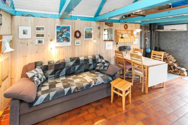 Badeværelsedør samt den gamle portindgangsdør er meget lave. Dette hus er det gamle signalhus fra redningsvæsenet. I dag er huset lavet til et hyggeligt indrettet feriehus med en dejlig beliggenhed tæt på Vesterhavet. Fra stuen er der udsigt til havet. Gratis internetadgang.