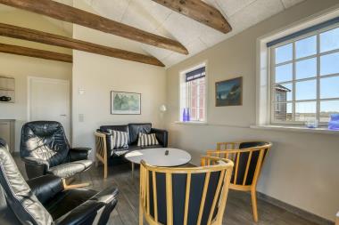Køkkenet som er kombineret med stuen, er meget veludstyret og indeholder bl.a. opvaskemaskine og køle-fryseskab. Stuen er lys og venlig og indrettet med komfortable møbler, fladskærms-TV med DR1 og TV2 samt parabol til modtagelse af de tyske kanaler. CD -afspiller. Stue og køkken er kombineret og åbne til kip og med synlige bjælker, og de store vinduespartier giver et fantastisk lysindfald i rummet. Der er 3 gode soveværelser i huset med 1DS + 1DS + 1K (2 meter i længde og gode madrasser). Der er 2 badeværelser i huset et med toilet, håndvask, bruser og gulvvarme og det andet er ligeledes med toilet, håndvask og bruser og dette er desuden med spabad. Vaskemaskine og tørretumbler er i fælleshus. Energiomkostninger 1.6.-31.8. kr. 415 pr. uge. 1.9.-31.10. kr. 515 pr. uge og fra 1.11.-31.3. kr. 615 pr. uge. Dette er et ikke rygerhus. 1 husdyr er tilladt. Har man en el-bil eller hybrid så findes der et CEE-ladestik ved huset, afregning ordnes direkte til ejeren