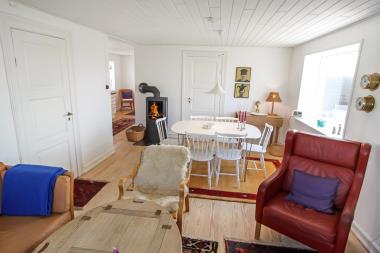 Hyggeligt indrettet feriehus i sten i 2 etager. Beliggende på en naturgrund med udsigt over havet. Gratis internetadgang.