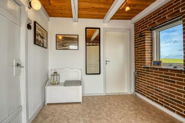 Den hyggelige stue er møbleret med læder- og polstermøbler og har TV med både danske og tyske kanaler samt lynhurtigt fibernet – ideelt til både afslapning og underholdning. Spisestuen har spisebord og direkte udgang til terrassen.