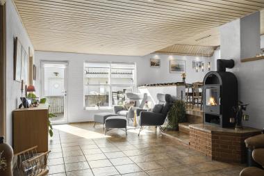 Fra udestuen er der udgang til en dejlig, indhegnet terrasse / gårdhave med havemøbler, cafesæt og kulgrill. Huset ligger tæt ved Jens Søndergårds Museum og ikke langt fra Bovbjerg Fyr. Nyd en fantastik gå- eller løbetur på stien, som er anlagt helt ude på kanten af Bovbjerg Klint med udsigt til Vesterhavet. Oplev at Vesterhavet hver dag fortæller en ny historie. Besøg de mange attraktioner og opleverser, som nås indenfor max 30 min. Eller besøg fiskerbyen Thyborøn eller den dejlige handelsby Lemvig med mange specialbutikker. Det perfekte hus til max 5 personer beliggende i et unikt morænelandskab, som byder på masser af bakker, muligheder og romantik.
