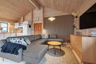 Opholdsrummet er det perfekte sted at slappe af efter en dag med aktiviteter, og her finder du en hyggelig brændeovn og en varmepumpe, der giver ekstra varme og atmosfære på køligere dage. TV’et er udstyret med DR-kanaler, og parabolantennen giver adgang til tyske kanaler, så du kan følge med i internationale programmer, desuden er der nyt møblement i huset.