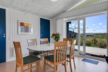 Huset ligger på en 1269 m2 stor grund kun ca. 200 m fra det brusende Vesterhav. Havets brusen kan høres, når man fx nyder morgenkaffen på den store træterrasse. Terrassen er delvis overdækket og der er havemøbler og gasgrill til rådighed, og lægger op til at tilbringe de sene sommeraftener med sine nærmeste. Ferring Sø ligger heller ikke langt fra huset, kun ca. 600 m, og er oplagt til en lang gåtur. En af favorit-ferieattraktionerne i området, Bovbjerg Fyr, ligger også kun få minutter væk bil. Her kan man nyde en kop kaffe og et stykke kage i caféen og blive blæst bagover den flotte udsigt fra toppen af fyret. Fra huset tager det ikke mange minutter i bil til Harboøre, hvor der er forskellige indkøbsmuligheder.