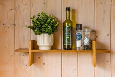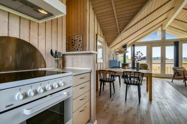 Så snart man har hentet nøglen til huset kan ferien begynde. Man bliver mødt af et hyggeligt indrettet hus på 70 m2 som er bygget 2005. En lille entré byder velkommen til et lyst og indbydende opholdsrum. Opholdsrummet består af en stor og godt udnyttet stue med loft til kip og et køkkenhjørne. I stuen er der et stort vinduesparti der giver et godt lysindfald og blik på den nye terrasse. Desuden er der hyggelige polstermøbler og fjernsyn med danske og tyske kanaler. Brændeovnen bidrager til god opvarmning og ekstra hygge på køligere dage, og lænestolen lige ved siden af indbyder til afslapning ved f.eks. at læse en bog. Køkkenhjørnet er veludstyret med blandt andet glaskeramisk komfur, emhætte, køle-/fryseskab, opvaskemaskine og mikroovn. I huset er der et fint lyst badeværelse med toilet, håndvask og bruser og der er også en vaskemaskine. Badeværelse opvarmes med gulvvarme. Til sidst er der tre hyggelige soveværelser. Et værelse er med dobbeltseng, det andet værelse er med to enkeltsenge og det sidste værelse er med en køjeseng.
