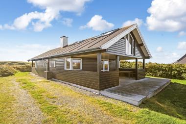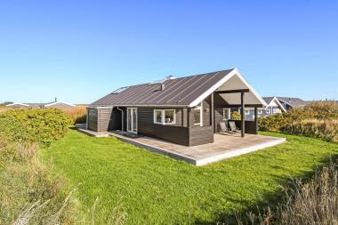 Dette flotte hus ligger på en 1100 kvm naturgrund i et roligt feriehusområde, ca. 3 km. sydøst for Vejlby Klit. Afstanden til Ferring sø er kun 200 m og til Vesterhavet er der 400 m. Lofte og vægge er af hvidolieret træ og der er skifer klinkegulve med gulvvarme med løse tæpper. Flot udsigtsstue med ekstra TV. Veludstyret køkken med bl.a. amerikansk køleskab, som er kombineret med husets dejlige stue.Her finder i husets farve-tv med danske kanaler og parabol (dog kun med tyske kanaler) og stereoradio med CD-spiller. Flot badeværelse med brusenische. Ekstra toilet med vaskemaskine. 2 soverum: (DS) + (DS+2K). Hems med 2 sovepladser. Terrasseforholdene er gode – her har man altid mulighed for at finde læ for vinden på den 100 kvm store terrasse der omgiver huset. Havemøbler er også til rådighed. Alt i alt et særdeles attraktivt feriehus. Husdyr tilladt.