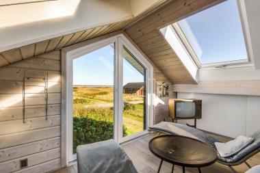 Flot, moderne træhus med udsigt til Ferrings Sø med de høje klitter ved Vesterhavet i baggrunden. Gratis Internet. Perfekt til par men også til familier på op til 6 personer. Skal opleves.