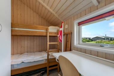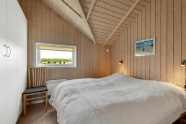 Dette flotte feriehus ligger på en 1200 kvm naturgrund i et roligt feriehusområde med blik ned til Ferring sø, ca. 3 km. sydøst for Vejlby Klit. Afstanden til Ferring sø er kun 200 m og til Vesterhavet er der 400 m. Lofte og vægge er af hvidolieret træ og der er trægulve med løse tæpper. Gratis internetadgang. Veludstyret køkken som er kombineret med husets dejlige stue.Her finder i husets tv med DR kanaler, parabol (med tyske kanaler) og stereoradio med CD-spiller. Flot badeværelse med brusenische og direkte adgang til husets sauna. 3 soverum: (DS) + (DS) + (2K) Terrasseforholdene er særdeles gode – man har altid mulighed for at finde læ for vinden på den 50 kvm store terrasse der omgiver huset. Havemøbler, liggestole. Alt i alt et særdeles attraktivt feriehus. Husdyr ikke tilladt.