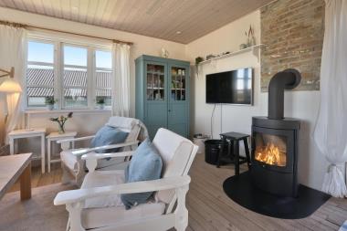 Godt udnyttet feriehus på ca. 65m2 som er bygget i 1965 og gennemrenoveret i 2010. Huset har 2 soveværelser (1DS, 1DS+1KS) og er til max 4 personer. Der er pæne trægulve i alle opholds- og soverum. Huset er i flot badehotel stil og er holdt i flotte, afstemte farver. Allerede når I parkerer bilen lige ved huset bliver I klar over at det er noget specielt. Hyggeligt køkkenhjørne, byder jer velkommen. Køkkenhjørnet har alt i hårde hvidevarer og i service og køkkengrej. Der er kombineret miniopvaskemaskine og komfur med keramiske kogeplader, emhætte og køleskab med separat fryseboks. I opholdsstuen er der bl.a. et dejligt spisebord med bænk og stole, tæt ved køkkenet, fladskærms-TV med Chromecast, så har du en mobiltelefon eller et andet device med kan du streame hvad du nu har abonnement. Der er kun mulighed for at se TV via Chromecast. Radio, pæne polstermøbler samt en hyggelig brændeovn der er med til at minimere el-regningen på de kølige dage eller aftener. Fra den lille entré ved køkkenet er der adgang til et flot badeværelse med toilet, håndvask, muret bruseniche, klinkegulv med gulvvarme og vaskemaskine. Fra badeværelset er der også adgang til husets forældre soveværelse (1DS) hvorfra der også er direkte udgang til terrassen. Ikke ryger hus. Husdyr ikke tilladt. Barnestol og barneseng til de mindste. Der er også adgang til et praktisk opbevaringsrum. Obligatorisk slutrengøring.