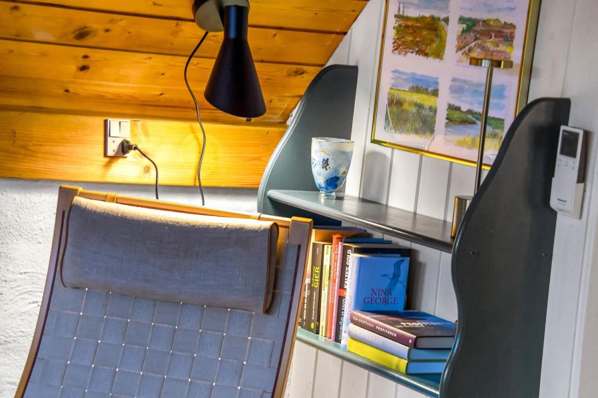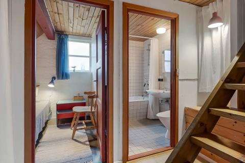 Feriehuset er på ca. 90 m2 og fremtræder næsten færdigrenoveret. Der er en hyggelig lys opholdsstue med højt til loftet. Der er gode, komfortable møbler, og på kølige aftener er det muligt at gøre opholdet behageligt ved at tænde op i brændeovnen og/eller varmepumpe. Der er installeret et nyt køkken med afdæmpede blå farvenuancer. Køkkenet indeholder de fleste moderne bekvemmeligheder såsom køl og frys, keramiske kogeplader, ovn og opvaskemaskine. Hvis feriehygge indbefatter hjemmelavet mad, så byder huset på rig mulighed dertil. Huset giver plads til 2 soveværelser i stueplan med i alt 3 sovepladser. Desuden er der en hems med to store enkeltsenge, som kan danne en dobbeltseng. Badeværelset er udstyret med toilet, håndvask, badekar og bruser.