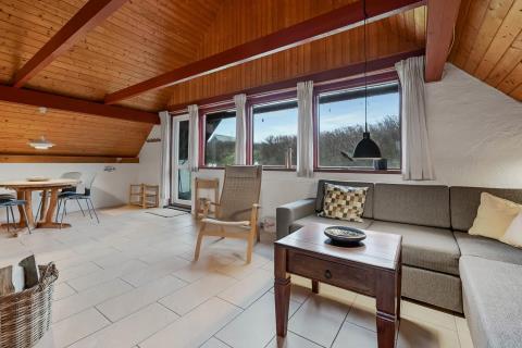 Udenfor huset er der en sydvest-vendt terrasse med havemøbler og grill. Terrassen er bindeled mellem huset og den omkringliggende natur, og bidrager i høj grad til, at følelsen af ferie, fred og ro kan sænke sig. Huset er en del af Fjaltring Ferieby som ligger klinet op ad klitterne ved Fjaltring Strand. Lige på den anden side af klitten ligger noget af det flotteste badestrand som Danmark har at byde på. Stranden og havet ligger til fri afbenyttelse året rundt.