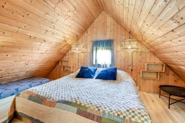 Rustikt sommerhus på 90 m2 med 2 soverum (1DS, 2ES). Soverum med 1 DS (180×200) er på 1. sal. 2 ES (80×200 og 120×200) i soverum i stueplan. Huset er enkelt indrettet med en opholdsstue med polstermøbler, TV med tyske programmer samt mulighed for at streame egne programmer og pejs. Der er installeret en varmepumpe. Køkkenhjørne med induktionskogeplade og indbygget ovn, opvaskemaskine og køle-/fryseskab. Badeværelse med toilet, håndvask og badekar med bruser. Desuden er der et opbevaringsrum med kommode.