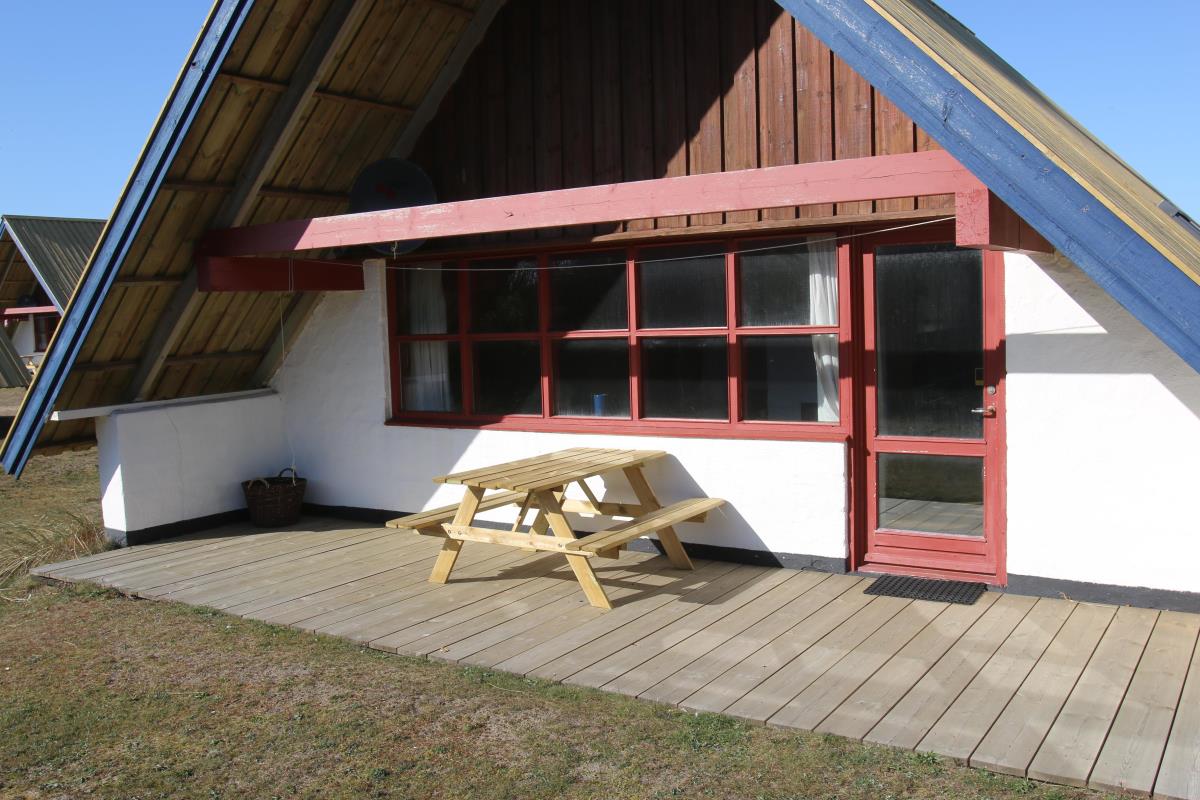 Fra opholdsstuen er der udgang til en lille, overdækket terrasse med havemøbler, 2 solvogne og grill. Huset er en del af Fjaltring Ferieby som består af 25 næsten identiske A-huse fordelt i 5 cirkler. Hele Feriebyen ligge i en dejlig ”gryde” i det fredede klitlandskab kun ca. 200m fra Vesterhavet. Nyd en økonomisk ferie i et enkelt feriehus med en helt unik beliggenhed. Parker bilen og nyd at I resten af ferien kan gå til stranden på under 5 minutter. Oplev det brusende Vesterhav som hverdag byder på nye oplevelser. Gå en tur eller dyrk den daglige motion langs med havet, i det smukke landskab eller udforsk områdets mange andre muligheder.