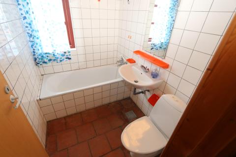 Rustikt sommerhus på 90 m2 med 2 soverum (1DS, 4ES). Soverum med 1 DS er på 1. sal. 2 ES i vinkel i værelse i stueplan og 2ES i opholdsstuen. Huset er enkelt indrettet med en opholdsstue med polstermøbler, TV med danske og tyske programmer og pejs. Enkelt køkkenhjørne med elektrisk komfur med 4 kogeplader og køleskab med lille fryseboks. Badeværelse med toilet, håndvask og bruser. 2 husdyr tilladt.