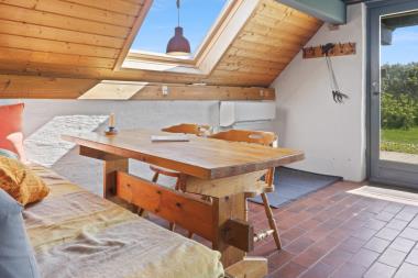 Rustikt sommerhus på100m2 med 2 soverum (1DS, 4ES). 2 åbne soverum på første sal med 1 DS og 2ES. sal. 2 ES i vinkel i værelse i stueplan. Huset er enkelt indrettet med en opholdsstue med polstermøbler, TV med danske og tyske programmer og pejs. Enkelt køkkenhjørne med elektrisk komfur med 4 kogeplader og køleskab med lille fryseboks. Der er installeret en varmepumpe. Badeværelse med toilet, håndvask og bruser. Klinkegulve med gulvvarme i stueplan. 2 husdyr tilladt.