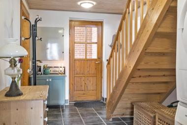 Entre med klinkegulv og plads til overtøjet tager imod jer. Her er der også trappen op til 1. sal. Stort flot køkken med spiseafdeling. Køkkenet er indrettet med el-keramisk kogeplade, køleskab, 31 l. frostbox, opvaskemaskine, indbygningsovn samt trægulve, der er også en dejlig brændeovn i rummet. Huset har ialt 4 soverum med hver en DS så der er plads til 8 personer. Stort badeværelse med toilet, håndvask, bruser samt klinkegulv med gulvvarme, der er desuden en vaskemaskine og tørretumbler. Flot opholdsstue med lædermøbler, CD, TV med tyske og danske programmer samt trægulv. fra opholdsstuen er der trapper ned til en ekstra hyggelig stue med lædermøbler og her er der klinkegulv. I begge rum er der store vinduespartier som giver et flot lysindfald i rummene. På 1. sal er der 3 af soverummene alle med DS. Selve huset er indrettet i herskabelig stil. Til de mindste gæster er der en barnestol og 1 barneseng. Rygning er ikke tilladt. 2 husdyr er tilladt.