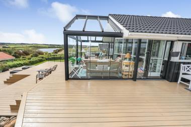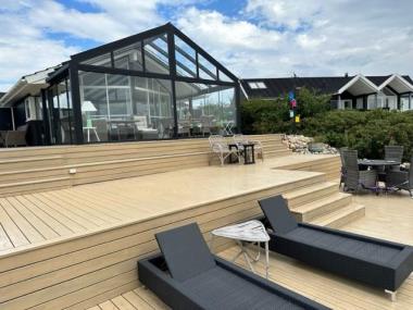 Dejligt sommerhus med unik udestue og fantastisk udemiljø der bla byder på niveauopdelte terrasse og udebruser. Fantastisk panoramaudsigt over Limfjorden med Lemvig by i baggrunden. Lækkert sommerhus både for den lille familie eller for parret, som ønsker at bo i et børnevenligt område med masser af muligheder. Gratis WIFI.