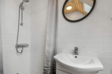 Træferiehus på ca. 90 m2. En entre byder jer velkommen til. Opholdsstuen er hyggeligt indrettet med nye møbler og smart-TV med DR-tvkanaler og tyske programmer samt Chromecast som giver mulighed for streaming af TV / radio / Apps, så har du en mobiltelefon eller et andet device med kan du streame hvad du nu har abonnement, bluetooth højtaler og spisebord. Slap af foran den knitrende brændeovn som sammen med varmepumpen hjælper med at reducere udgiften til varmeregningen. Fra stuen er der via trappe afgang til en dejlig hems som er indrette med flere muligheder for leg til begejstring for mange børn og barnlige sjæle. Via en trappe går man ned en nyere tilbygning hvor huset køkken er placeret. 3 soveværelser (1DS, 1DS, 2ES). Køkkenet har elektrisk komfur, emhætte, opvaskemaskine, mikroovn, køleskab med lille fryseboks. 2 Badeværelser med toilet, håndvask, bruser og klinkegulv. Det ene badeværelse har også gulvvarme. Der er praktiske hårde gulve i hele huset. Rygning er ikke tilladt i huset. Max 1 husdyr tilladt. Det er den oplagte feriebolig med flot udsigt.