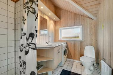 Huset er særdeles veludstyret med vaskemaskine, varmepumpe og brændeovn. Badeværelse og bryggers har klinkegulv.