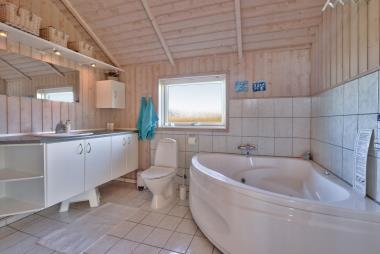 Huset er særdeles veludstyret med spa, tørretumbler, vaskemaskine, varmepumpe og brændeovn. Badeværelse og bryggers har klinkegulv med gulvvarme.