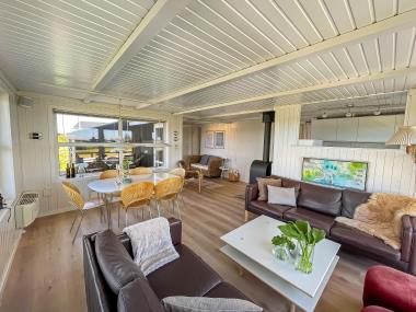 Feriehus på ca. 71 m2 fra 1979 og renoveret i 2020. Praktisk lille entré med ekstra aflægge- og afhængeplads tager imod huset gæster. Kombineret opholdsstue og køkkenhjørne. Opholdsstuen er pænt møbleret med gode lædermøbler, TV med danske og tyske programmer og Chromecast med mulighed for streaming af TV / radio / Apps, som du har abonnement til, via medbragte devices. Slap af foran den knitrende brændeovn, som sammen med varmepumpen hjælper med at reducere udgiften til varmeregningen og nyd den pragtfulde udsigt fra stuen til Limfjorden. Samtalekøkkenet rummer keramiske kogeplader, emhætte, indbygningsovn, mikroovn, opvaskemaskine, vaskemaskine og køleskab med fryseboks. Badeværelse med bruser, toilet, håndvask og linoleum gulv med gulvvarme. Der findes tre soverum i huset (1DS, 1DS, 1DS). Huset må max beboes af 6 personer. Huset har praktiske trægulve i alle opholdsrum. Rygning er ikke tilladt i huset. Max 2. husdyr tilladt.