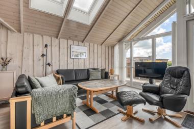 Huset er smagfuld møbleret med lædermøbler og alt er lyst og venligt indrettet. Der er TV med danske og tyske kanaler og chromecast med mulighed for streaming af programmer som I selv har et abonnement til. Dejlig brændeovn som sammen med varmepumpen sørger for en behagelig varme uanset årstid og desuden medvirker til at spare på elregningen. Huset råder over 3 soverum: 1DS + 1DS + 1E. Stort badeværelse med toilet, håndvask, bruser, sauna og spabad, klinkegulv med gulvvarme. Køkkenafdeling med alt i service og kogegrej. El-komfur, køle-/fryseskab, emhætte, mikroovn, opvaskemaskine og klinkegulv med gulvvarme. Gæstetoilet med toilet og håndvask og gulvvarme. I entre er der vaskemaskine og tørretumbler. Ikke rygerhus.