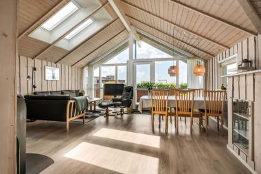 Huset er smagfuld møbleret med lædermøbler og alt er lyst og venligt indrettet. Der er TV med danske og tyske kanaler og chromecast med mulighed for streaming af programmer som I selv har et abonnement til. Dejlig brændeovn som sammen med varmepumpen sørger for en behagelig varme uanset årstid og desuden medvirker til at spare på elregningen. Huset råder over 3 soverum: 1DS + 1DS + 1E. Stort badeværelse med toilet, håndvask, bruser, sauna og spabad, klinkegulv med gulvvarme. Køkkenafdeling med alt i service og kogegrej. El-komfur, køle-/fryseskab, emhætte, mikroovn, opvaskemaskine og klinkegulv med gulvvarme. Gæstetoilet med toilet og håndvask og gulvvarme. I entre er der vaskemaskine og tørretumbler. Ikke rygerhus.