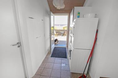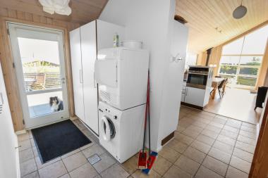 Dette kvalitets feriehus på ca. 98 m2, er bygget i 2009 og er herefter blevet løbende vedligeholdt og renoveret. En rummelig entré med vaskemaskine og tørretumbler byder jer velkommen. En dejlig Kombineret opholdsstue og køkkenhjørne med loft i kip. Opholdsstuen er pænt møblere med bla en hjørnesofa, TV med parabol, som gør at det er muligt at se danske og tyske kanaler samt Chromecast til streaming af abbonnementstjenester. Slap af foran den knitrende brændeovn, som sammen med varmepumpen hjælper med at reducere udgiften til varmeregningen samtidig med I nyder udsigten fra stuen til Limfjorden.