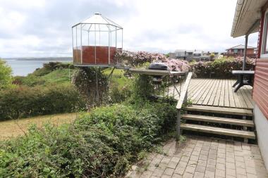 Virkeligt lækkert feriehus med alt hvad hjertet kan begære. Huset er bygget i år 2004 og er særdeles lyst, venligt og smagfuldt indrettet. Den rummelige stue er møbleret med lædersofaer, brændeovn og fjernsyn med parabol, dk-antenne, DVD-afspiller. Parabol dog kun med tyske kanaler. Her er der gratis Internetadgang ( man skal dog selv medbringe computer) 2 gulvopvarmede badeværelser med toilet, bruser og håndvask – det ene med spa-bad og direkte adgang til husets sauna. Bryggers med vaskemaskine og tørretumbler. 3 gode soverum – (DS + DS + 2ES) – samt hems med 2 ekstra liggepladser. I et af soverummene finder du også et ekstra fjernsyn. Dejlig 45 kvm terrasse hvorfra der er en storslående udsigt over landskabet og delvis over Limfjoden. Der er bygget en havepavilion hvorfra man har adgang til fra terrassen, herfra har man en god udsigt. Til børnene er der gynger og sandkasse. En lidt stejl sti fører op til huset. Der er installeret varmepumpe i huset og det betyder at du som gæst kan spare en del på din elvarmeregning – varmepumpen leverer op til 4 gange så meget effekt som den bruger, det betyder at for hver kilowatt-time pumpen bruger yder den varme svarende til ca. 4 kW energien udnyttes dermed langt bedre. Ikke rygerhus.Virkeligt lækkert feriehus med alt hvad hjertet kan begære. Huset er bygget i år 2004 og er særdeles lyst, venligt og smagfuldt indrettet. Den rummelige stue er møbleret med lædersofaer, brændeovn og fjernsyn med parabol, dk-antenne, DVD-afspiller. Parabol dog kun med tyske kanaler. Her er der gratis Internetadgang ( man skal dog selv medbringe computer) 2 gulvopvarmede badeværelser – det ene med spa-bad og direkte adgang til husets sauna. Bryggers med vaskemaskine og tørretumbler. 3 gode soverum – (DS + DS + 2ES) – samt hems med 2 ekstra liggepladser. I et af soverummene finder du også et ekstra fjernsyn. Dejlig 45 kvm terrasse hvorfra der er en storslående udsigt over landskabet og delvis over Limfjoden. Der er bygget en havepavilion hvorfra man har adgang til fra terrassen, herfra har man en god udsigt. Til børnene er der gynger og sandkasse. En lidt stejl sti fører op til huset. Ikke rygerhus.