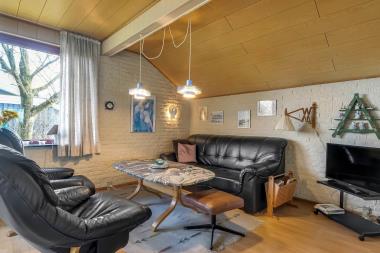 Feriehuset er enkelt og funktionelt indrettet med kombineret køkken og opholdsstue. Køkkenet er udstyret med glaskeramisk komfur, køle-/fryseskab, emhætte, opvaskemaskine og mikroovn. Opholdsstuen har TV med danske og tyske programmer samt parabol (kun tyske kanaler) og brændeovn.