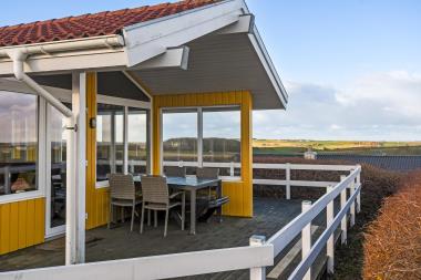 Udendørs er der en 125 m² stor terrasse, som omgiver huset, og der er altid et læfyldt sted at nyde solen. Til de mindste er der gynge og sandkasse, så børnene kan lege trygt. Nær ved huset ligger også den flotte naturlegeplads i træ med rutsjebaner, gynger og meget andet. Tæt ved huset findes også iskiosk og restaurant, som har åbnet i sæsonen. Der er i øvrigt kun ca. 6 km til Lemvig by, som er en livlig handelsby med mange butikker, fiskerestaurant, biograf, skaterbane, museum mm.