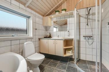 Særdeles flot, hyggeligt og velholdt feriehus på 103 m2 fra 2005. En dejlig entré med afliggeplads, vaskemaskine og tørretumbler byder velkommen. Kombineret opholdsstue og køkkenhjørne, som i 2024 er blevet optimeret af husets nye ejere og gjort endnu mere hyggelig. Opholdsstuen med gode møbler, spisebord, Smart-TV med danske og tyske programmer via fiber samt en Chromecast med mulighed for streaming af TV / radio / Apps. Der er også en DAB Radio. Slap af foran den knitrende brændeovn der sammen med varmepumpen (A++), hjælper med at reducere udgiften til varmeregningen. Køkkenhjørnet er lyst og venligt og har alt i hårde hvidevarer og i service og køkkengrej. Komfur med glaskeramiske kogeplader, indbygningsovn, airfryer, køleskab med fryseboks, mikroovn og opvaskemaskine. Praktisk klinkegulv i opholdsstue og køkkenhjørne med gulvvarme. Stort flot badeværelse med bruser, toilet, håndvask, gulvvarme, spabad og direkte adgang til sauna. Ekstra badeværelse med toilet, håndvask og gulvvarme. 3 gode soverum (1DS, 1DS, 2ES), i alle soverum er der trægulv. I opholdsstuen er der en hyggelig alkove (1 soveplads). Utrolig velholdt feriehus til den perfekte ferieoplevelse. Der er tænkt på det meste. Ejer af huset passer og plejer huset, så det altid præsenteres fra den bedste side. Barneseng og højstol til børnene. Max. 1 husdyr tilladt. Ikke-ryger hus.
