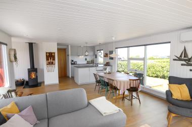 Dejligt feriehus på 73 m2 med 3 gode soverum (1DS, 1DS, 2KS). En lille entré byder velkommen. Kombineret opholdsstue og køkkenhjørne som er moderniseret i 2022. Det flotte køkkenhjørne er lyst og venligt og har alt i hårde hvidevarer: Glaskeramiske kogeplader, indbygningsovn, køleskab med fryseboks og opvaskemaskine. Opholdsstuen med gode polstermøbler, spisebord, TV med Chromecast og HDMI -stik som giver mulighed for streamings tjenester. så har du en mobiltelefon eller et andet device med kan du streame hvad du har abonnement. Der er kun mulighed for at se TV via det tilsluttede Chromecast. Der er også CD / Radio. Ny, lækker brændeovn som sammen med varmepumpen hjælper med at reducere udgiften til varmeregningen. Praktiske hårde gulve i opholdsstue og køkkenhjørne. Lille badeværelse med bruser, toilet og håndvask. Husdyr er ikke tilladt. Ikke-ryger hus.