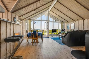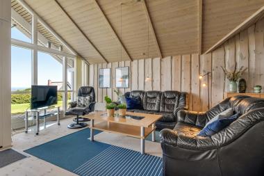 Dette feriehus ligger på 955 m2 stor grund med en flot udsigt ud over Limfjorden. Huset fremstår står lyst og venligt med store vinduer og terrassepartier med havemøbler. Køkkenet er velindrettet og udstyret med bla. opvaskemaskine og mikroovn. Stuen som er kombineret med køkkenet er møbleret med flotte møbler og er udstyret med brændeovn,farve tv med parabol (dog kun med tyske kanaler), DVD og stereoanlæg med cd. Her er der trådløs internetadgang, hvilket er gratis. ( man skal dog selv medbringe computer) Der er installeret varmepumpe i huset. 3 soverum : (DS)+ (DS) + (2K). 2 gulvopvarmede toiletter – den ene med spa og sauna. Lille bryggers med tørretumler og vaskemaskine. Et dejligt feriehus på alle årstider. Gratis adgang til Lemvig Idræts & kulturcenter hvor der er svømmehal mm. Se venligst : www.lemvig-idraets-og-kulturcenter.dk Husdyr tilladt.