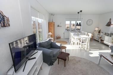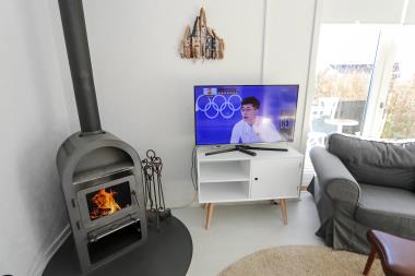 Godt indrettet helårshus på 117 m2 med 3 soveværelse (1DS, 1DS, 1KS). Opholdsstue med polstermøbler, spiseplads, brændeovn, TV med danske og tyske kanaler samt chromecast som giver mulighed for streaming af radio, TV og app´s. Veludstyret køkken med Glaskeramisk kogeplader, indbygningsovn, mikroovn, emhætte, opvaskemaskine og køleskab og fryser på 70 l. Brygges ekstra afhængeplads. Dejligt badeværelse, toilet, håndvask, spabad med håndbruser, pusleplads, vaskemaskine og tørretumbler samt klinkegulv med gulvvarme. Ekstra toilet med håndvask og bruser. Lille charmerende arbejdsværelse med udsigt til landskabet. Huset har fjernvarme. Ikke ryger hus. Max. 2 husdyr tilladt.